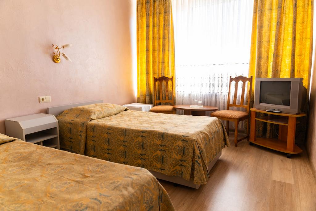 Отель оформлен в уютном стиле, номера чистые. Напольное покрытие — ковролин. Из мебели и техники в наличии: кровать, тумбочка, шкаф, стол, стул, ТВ, холодильник и внутренний телефон. В отдельных категориях номеров предусмотрены балконы.