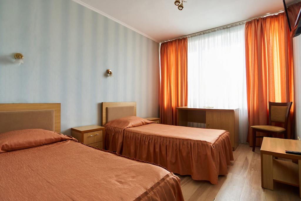 В номере Алмаз: в комнате 2 односпальные кровати (ширина 90 см.), прикроватные тумбы, стол, стул, шкаф, зеркало , холодильник, телевизор, телефон, туалет и душ в номере. Набор полотенец на каждого гостя. Также предоставляется дополнительное место (еврораскладушка с матрасом) для третьего гостя в номере.