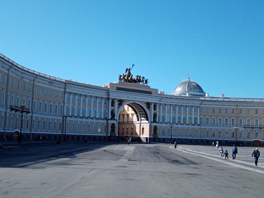 09:00 – Загружаем вещи в автобус и отправляемся на дворцовую площадь, чтобы сделать самые лучшие фотографии с Александровской колонной и загадочными атлантами.