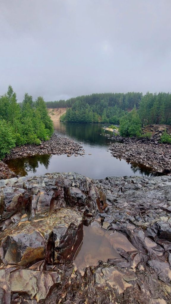 Рукотворное русло: вам откроется вид на спрямленное русло реки Суны — результат взрывных работ, проведенных для лесосплава. Это яркий пример взаимодействия человека и природы.