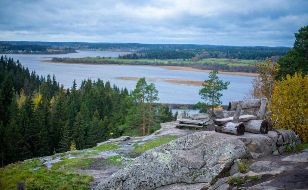 Наше путешествие начнется с этнопарка на горе Сампо, расположенного всего в 35 км от Петрозаводска на живописном перешейке между Кончезером и Укшозером . Высота горы всего около 40 метров, поэтому подъем на вершину по удобной деревянной лестнице будет легким и приятным .